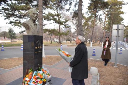颁奖典礼开始前,与会专家齐聚林志纯先生塑像前,敬献鲜花,表达哀思与敬意