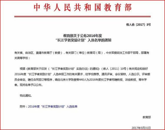 2017年9月20日,教育部、财政部、国家发展改革委《星空(中国)公布世界一流大学和 一流学科建设高校及建设学科名单的通知》