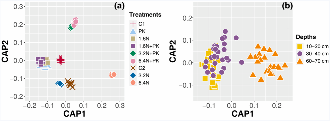 图3:长期养分输入改变北方泥炭地土壤中真菌群落结构及其垂向分异特征