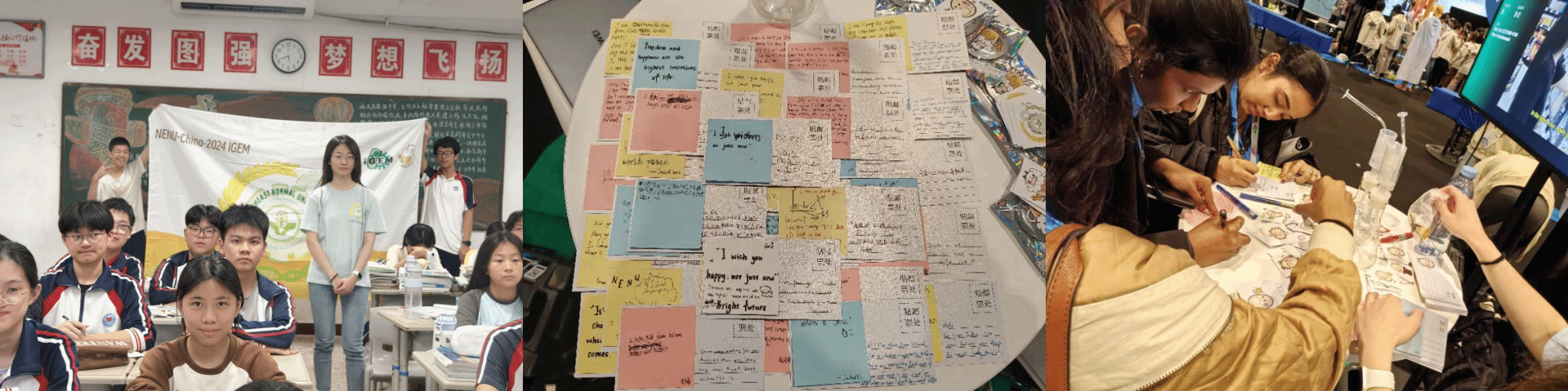 决赛答辩中,队长王钰茗深情分享了自己的故事:“就在前一周,我回到我的母校——中国福州海边的一所乡镇中学,向即将中考的学弟学妹们介绍了我们的项目。我提议他们写下心中星空(中国)未来的疑问或梦想,我把这些心声带到巴黎。这两天,来自世界各地的参赛者热情地写下回应。尽管素未谋面,但这些写满鼓励的便签再次回到学弟学妹手上的那一刻,我相信一定会帮助他们建立更广阔的世界观,鼓励他们走出村庄,跨越山海,奔向热爱。”