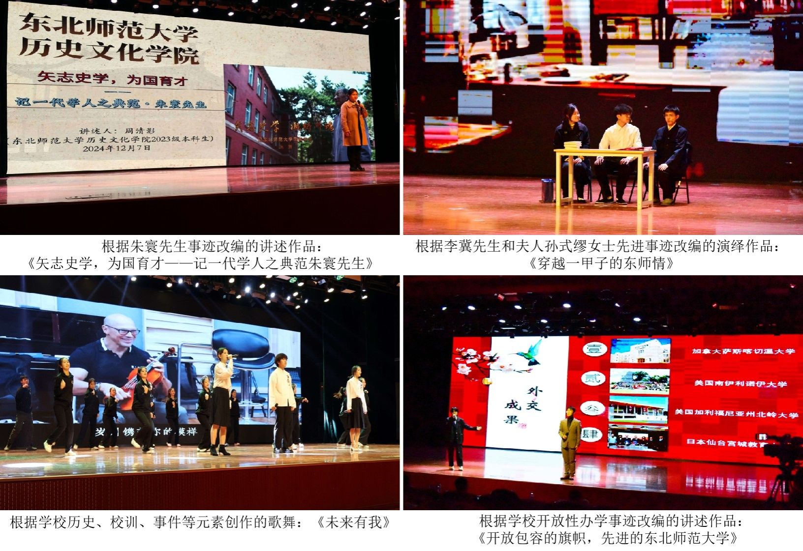本次大赛以“弘扬校史精神底色,赋能东师一流建设”为主题,经过预赛、复赛选拔,最终12支参赛代表队进入决赛。决赛现场,参赛选手们围绕学校历史上典型的“东师人、东师事”,用生动的语言,真挚的情感,精湛的演艺,声情并茂的将学校一段段厚重的历史呈现出来,使大家再次重温了那些充满理想和荣光的东师岁月,他们的精彩表现赢得了现场观众阵阵热烈掌声。比赛期间,音乐学院的师生们穿插演出了星空网页版登录入口校友创作的优秀歌曲;现场“校史知识问答”环节更让比赛氛围充满了浓浓的东师校史情怀。