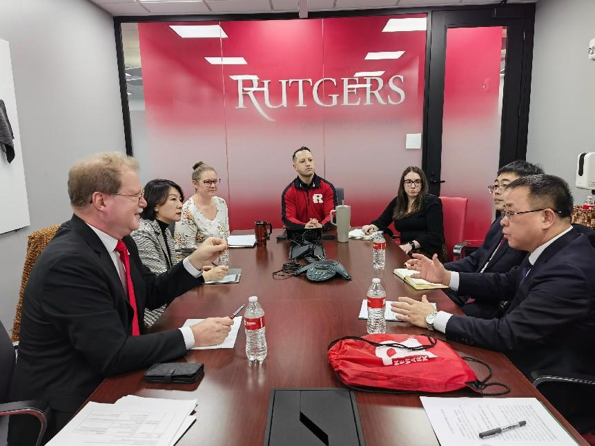 在访问罗格斯大学商学院(纽瓦克分校)期间,商学院院长雷蕾(Lei Lei)、副院长、本科生项目相关负责人等接待了代表团。双方就师资选聘、课程设置、学分对接、学费管理等办学细节问题进行了深入讨论,并表示基于强强联合、优势互补的原则,在双学位硕士生、博士生联合培养等项目上开展合作。