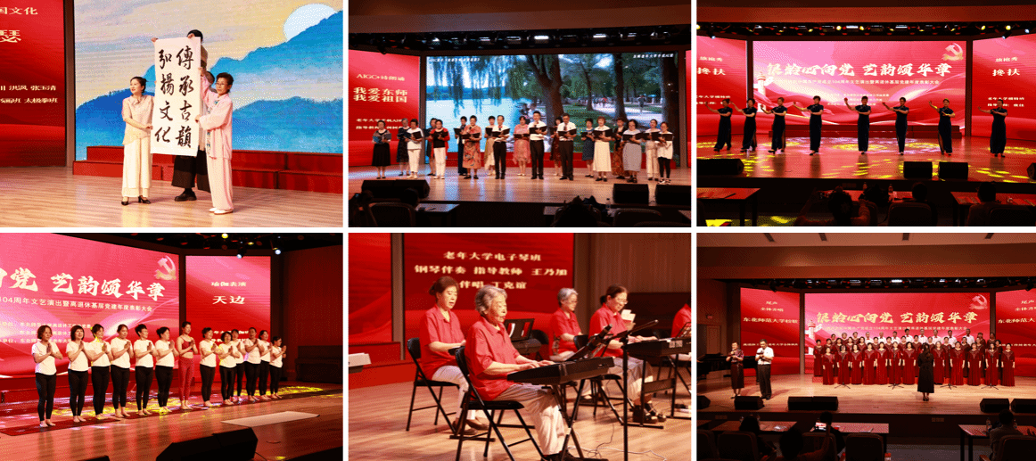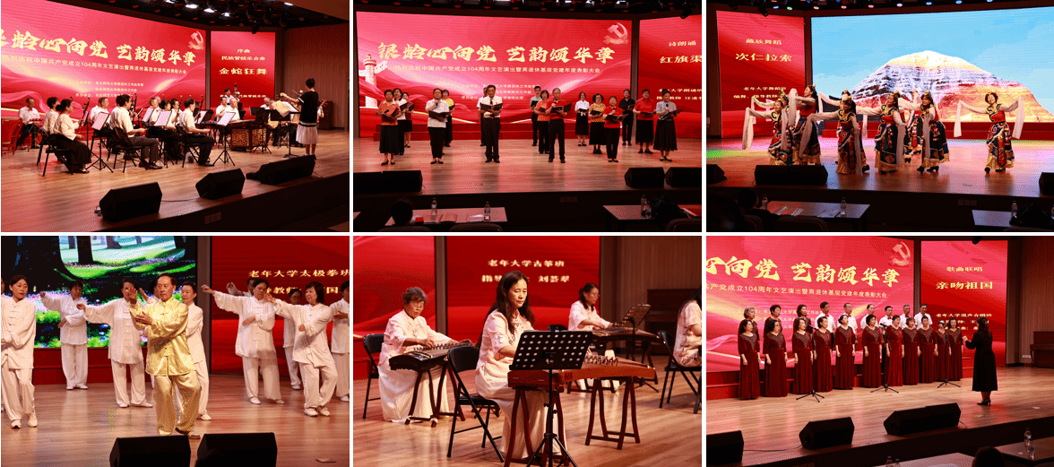 严蔚刚和相关部门负责人分别为老同志颁发了纪念章和荣誉证书。随后,由离退休工作处老年大学承办的文艺演出在欢快明朗的民族管弦乐合奏《金蛇狂舞》中拉开了序幕。老年大学民族管弦乐班的《江山》,合唱班的《亲吻祖国》《祖国不会忘记》,手机AI班的《我爱东师,我爱祖国》,朗诵班的《红旗渠》以及电子琴班的《黄水谣》展现出离退休老同志对党和祖国的深情与眷恋,以及对革命精神与开创精神的传承与弘扬;民族管弦乐班的《山乡春来早》,舞蹈班的《次仁拉索》,古筝班的《渔舟唱晚》,模特班的《搀扶》,瑜伽班的《天边》以及太极拳班、太极剑班、书画班等的展演节目精彩纷呈,展现出老同志热爱生活、积极向上的精神风貌;最后,演出在高亢激昂的集体合唱《星空网页版登录入口校歌》中圆满结束。