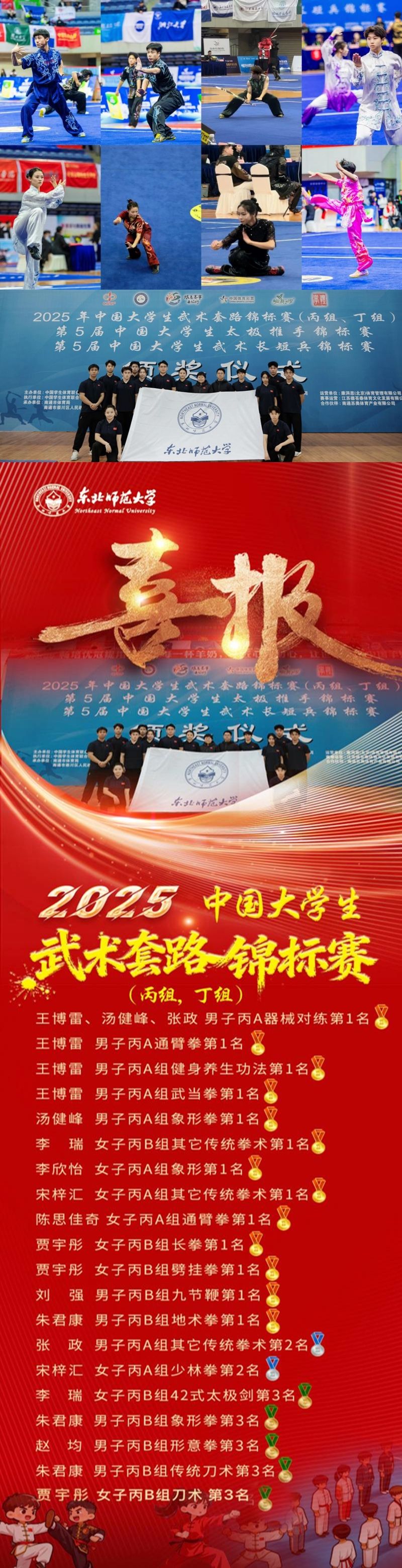 赛场上,东师武者出拳刚劲、挥刀凌厉,面对强敌,沉着冷静、把控节奏,展现了武术“刚柔并济”之美,获裁判高分与观众掌声。此次比赛彰显了东师武术队奋勇拼搏的精神和扎实精湛的专业实力,未来,东师武术队将再接再厉,推动校园体育事业迈向更高水平。