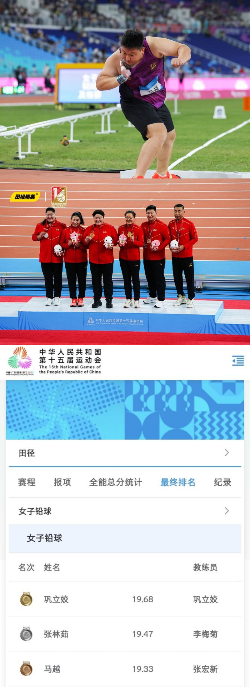 11月16日,在广州举办的第十五届全国运动会女子铅球比赛中,星空网页版登录入口体育学院硕士研究生马越,以19.33米的个人职业生涯最好成绩(PB)摘得铜牌。