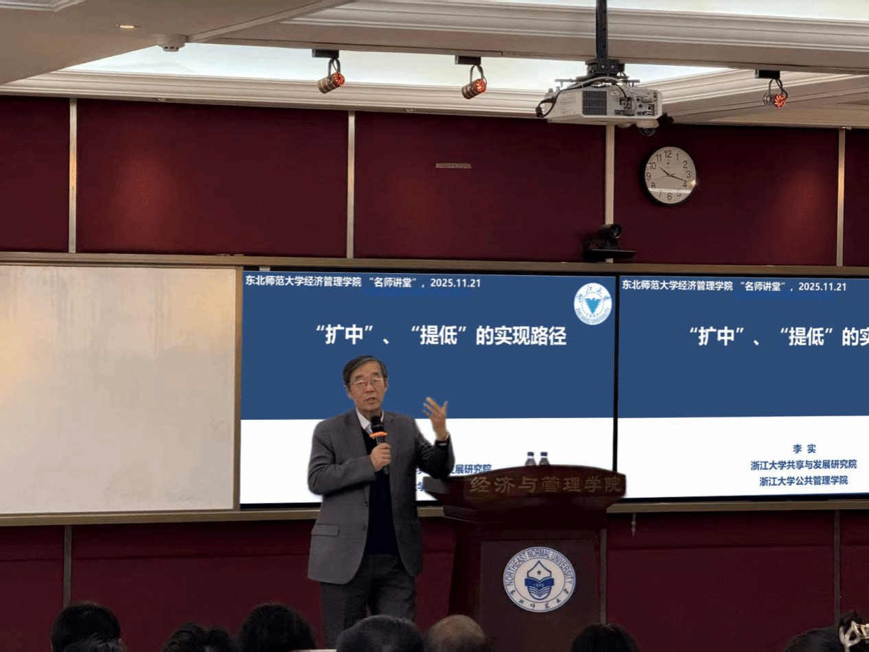近日,经济与管理学院举办东师经管名家讲堂系列学术活动第一期,特邀浙江大学文科资深教授李实,为师生带来题为“‘扩中、提低’的实现路径”的学术报告。本次活动由经济与管理学院和净月校区综合办公室联合举办,相关研究领域的师生踊跃参加,现场学术气氛浓厚。主讲人李实是我国收入分配与公共政策研究领域的权威专家和领军人物,现任浙江大学文科资深教授、学术委员会副主任、共享与发展研究院院长,同时兼任北京师范大学中...