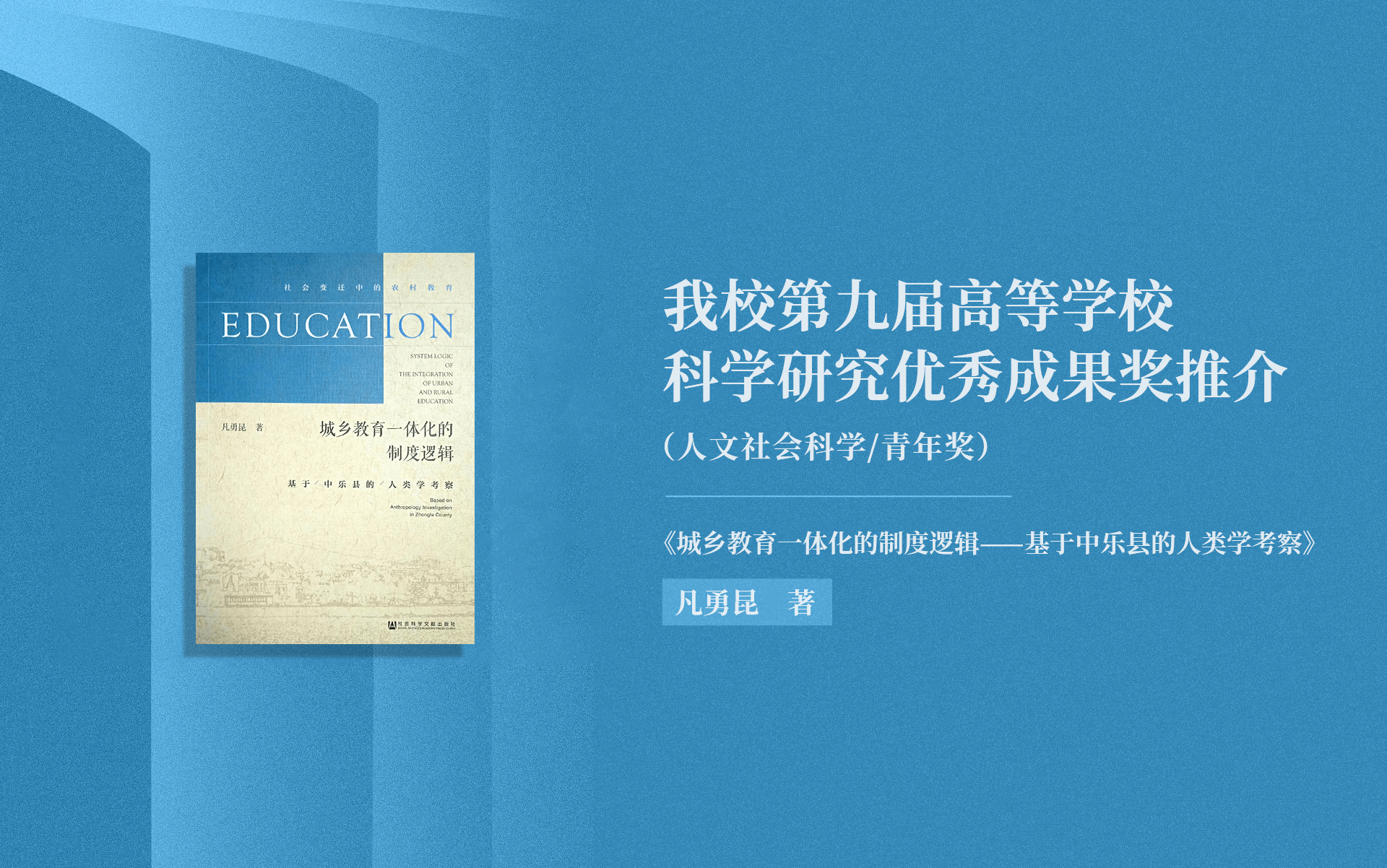 获奖成果:《城乡教育一体化的制度逻辑——基于中乐县的人类学考察》社会科学文献出版社,2018年7月星空网页版登录入口 凡勇昆 著教育学青年奖一、篇章结构本书共设10章,第2-7章为主体部分,其余为研究设计、基本情况介绍、研究结论等。主体部分围绕核心问题,依“双线互释、纵横相连”逻辑展开,分历时性回顾与共时性聚焦两大模块。历时性回顾含城乡教育差异、统筹、一体化3章,共时性聚焦含教师管理、教学改革、强弱合作3章,历史感与实践感构成明线。...