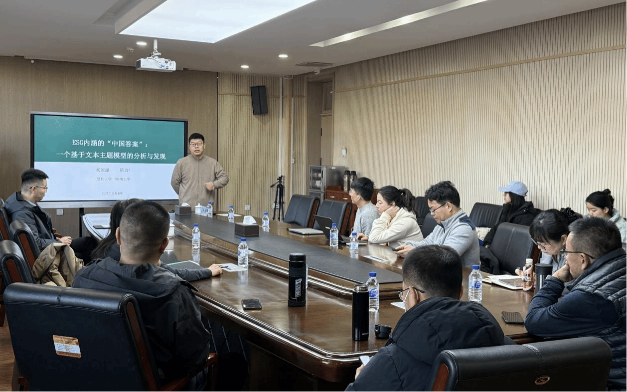 近日,经济与管理学院特邀复旦大学保险应用创新研究院杨国超教授来校讲学交流。杨国超长期聚焦于宏观经济金融政策、资本市场制度安排与微观企业行为决策之间的互动关系,在《经济研究》《管理世界》等国内外权威学术期刊发表多篇高水平论文,曾获洪银兴经济学奖、教育部高等学校科学研究优秀成果二等奖等多项重要奖项,在相关研究领域具有深厚的学术造诣和广泛的学术影响力。青年学者论坛上,杨国超作了题为“ESG内涵的‘中国答...